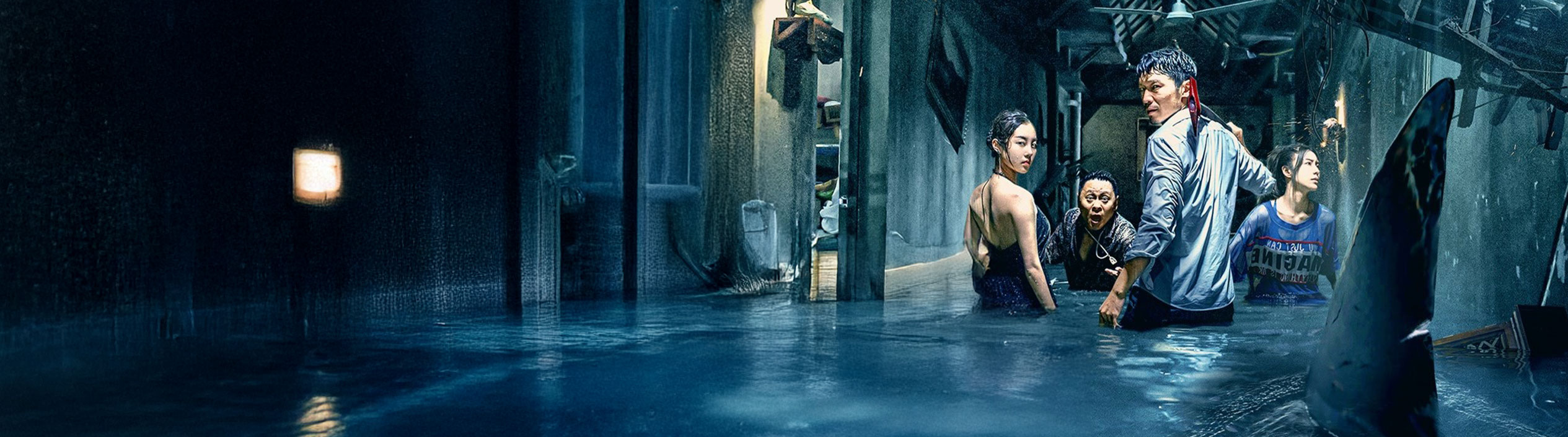 A lively beach party had just ended. But an unexpected tsunami swept over them, and a raging giant shark sneaked into the hotel. A big fight between man and shark unfolded instantly.